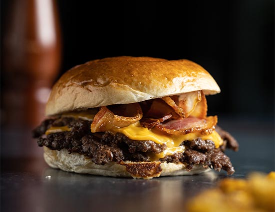 14€(200 gr. de carne, bacon, queso Cheddar, lechuga, cebolla y pepinillo)